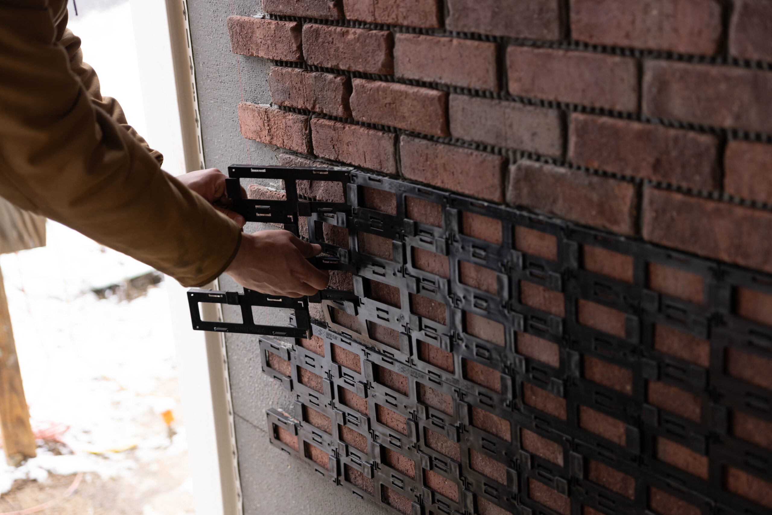 The interlocking Rapid-Clad Brick System™ trays are designed to hold thin brick in place and automatically maintain proper joint spacing and coursing.